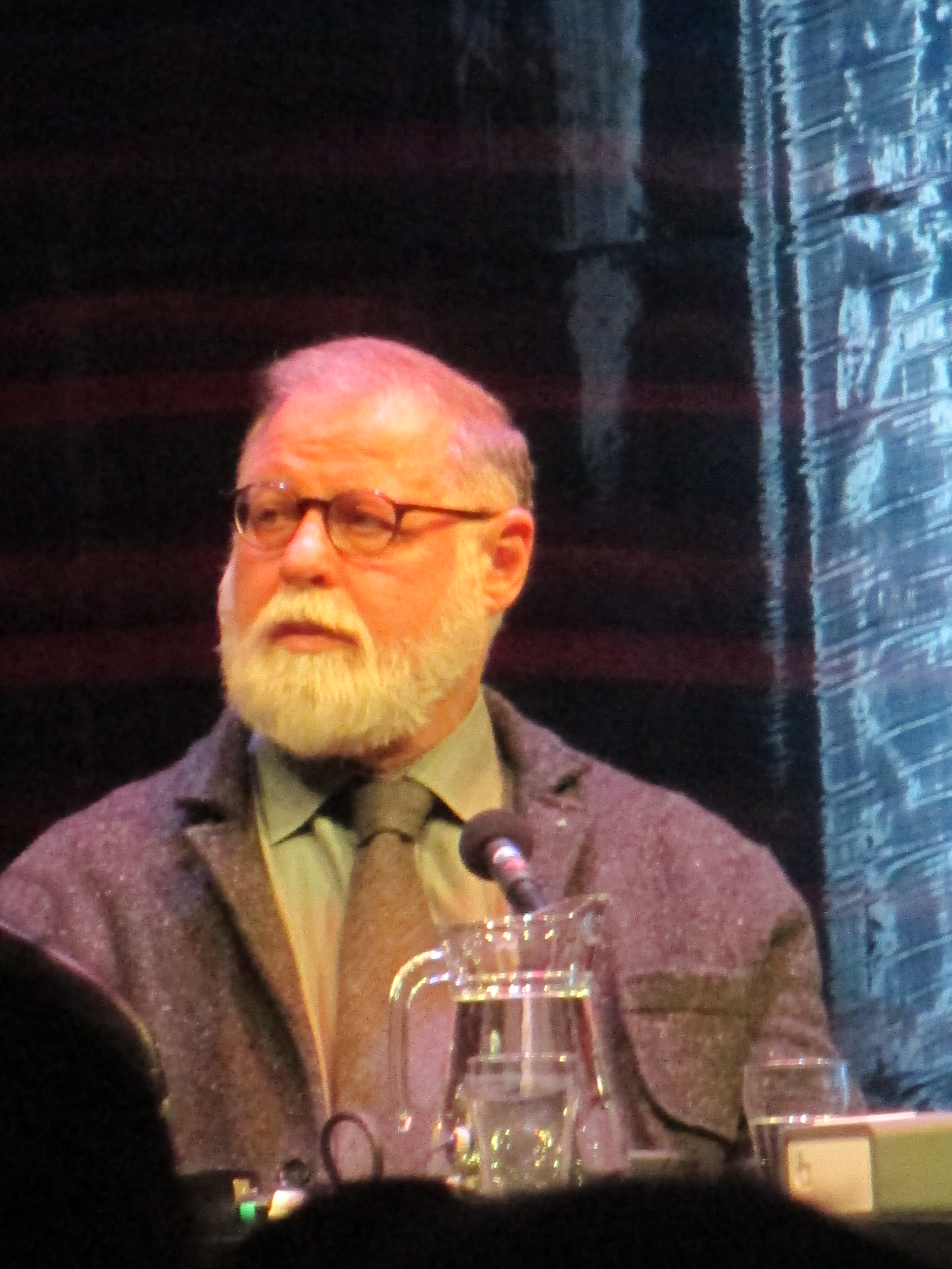 Alberto Manguel, argeńtyński pisarz, eseista, dziennikarz, tłumacz i posiadacz ok. 30,000 książek w trakcie dyskusji na festiwalu literackim Writers Unlimited Winternachten, Haga, styczeń 2013, (foto Ł.K.)