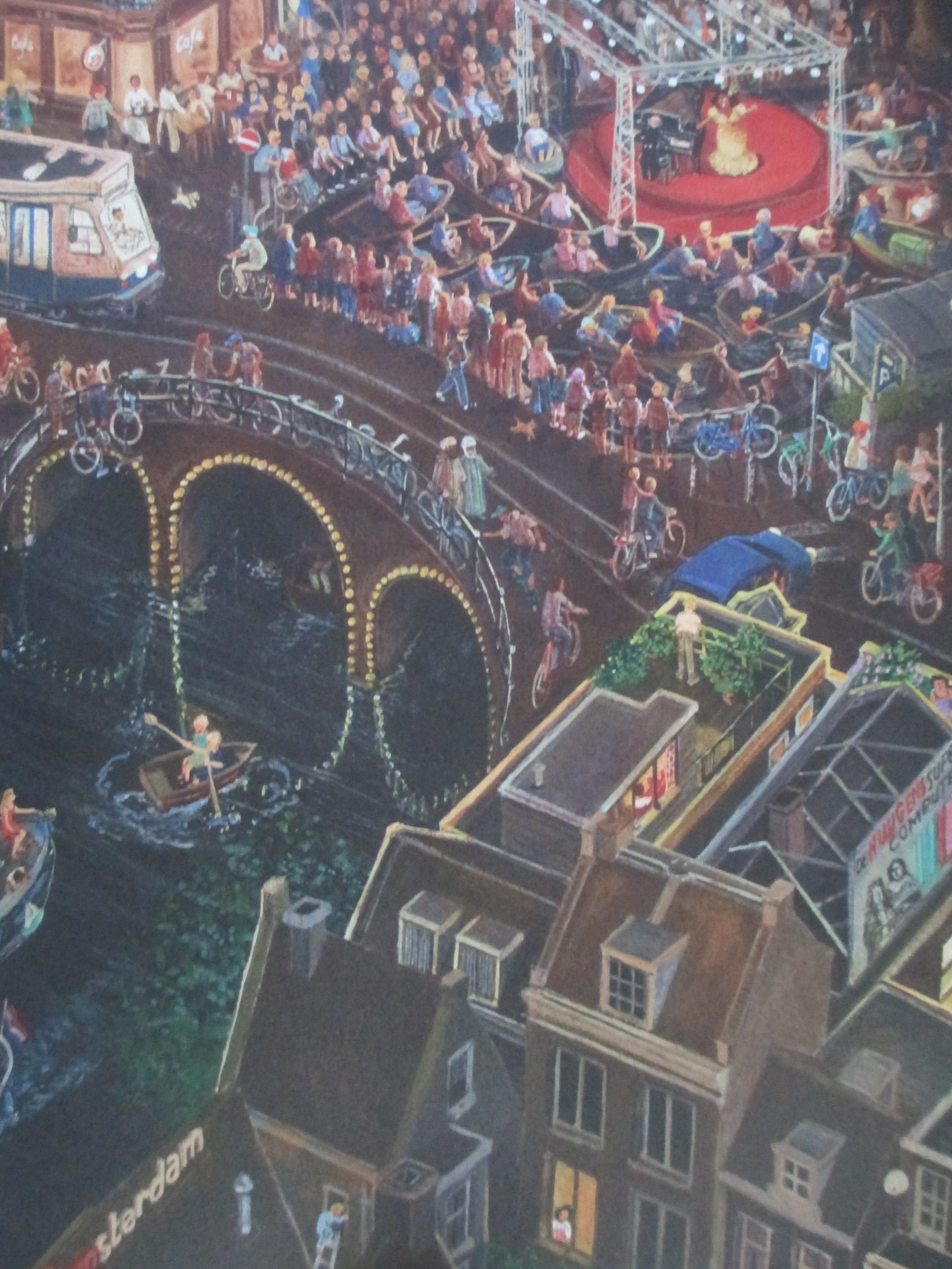Recenzent NRC (cztery gwiazdki dla Nederland!) wymienił jedynie część ze znaczących szczegółów, jakie znajdziemy na amsterdamskim obrazku: łodzie mieszkalne, wielkie katarynki na kółkach, wieżę kościoła Westerkerk, turystów na wypożyczonych rowerach, Rembrandta, kino Tuschinsky, roboty drogowe, koncert Prinsengrachtconcert, Annę Frank czy nawet… ślub homoseksualny.