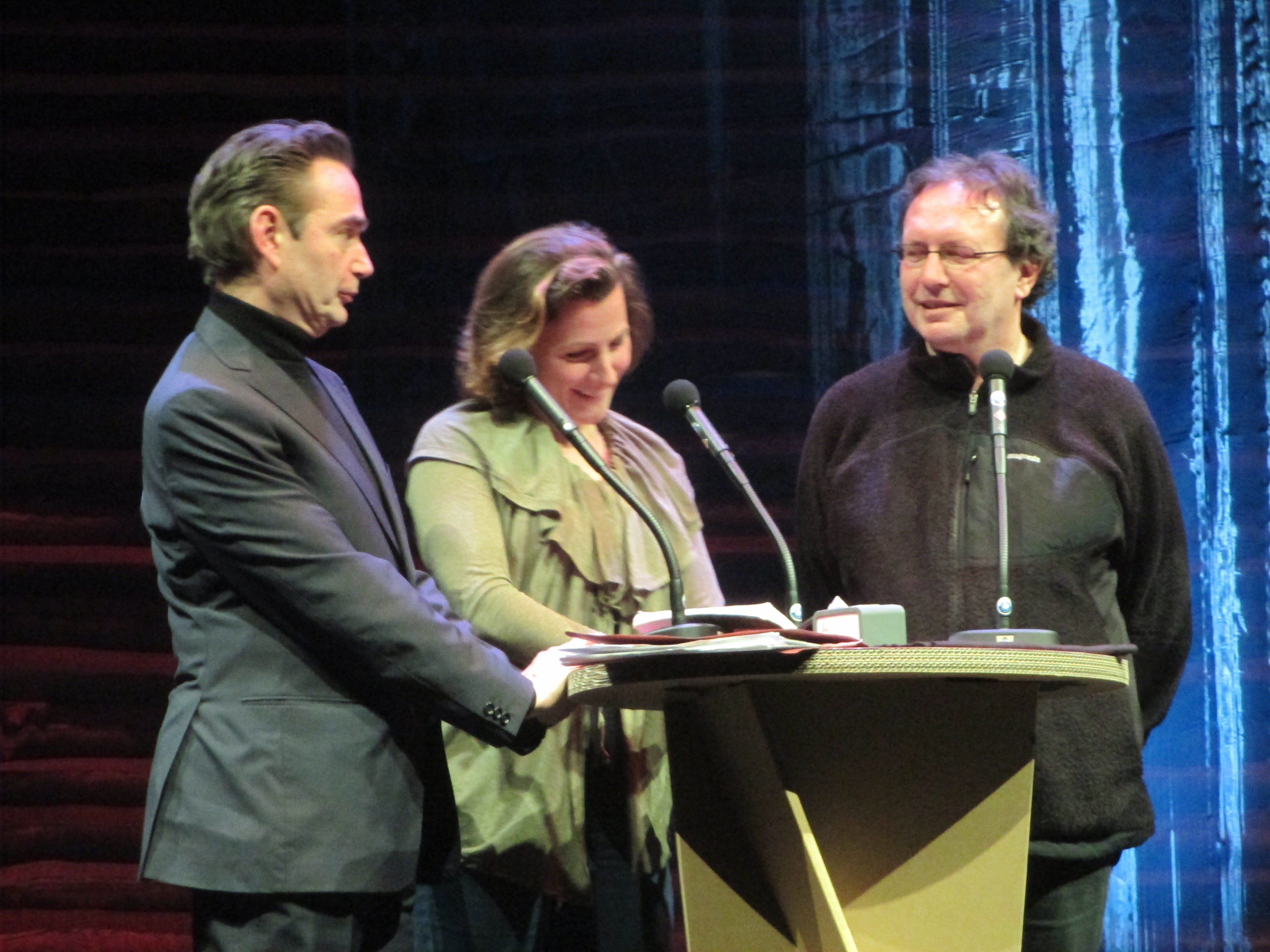 Z lewej Poeta Miejski Amsterdamu w latach 2011-2013 Menno Wigman, w środku Poetka Miejska Rotterdamu (od 2011 r.) Esther Naomi Perquin