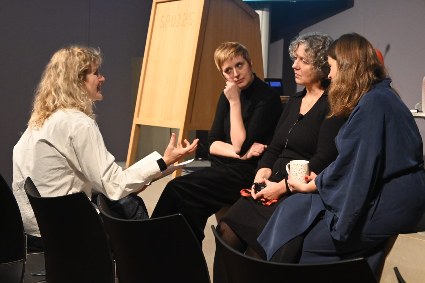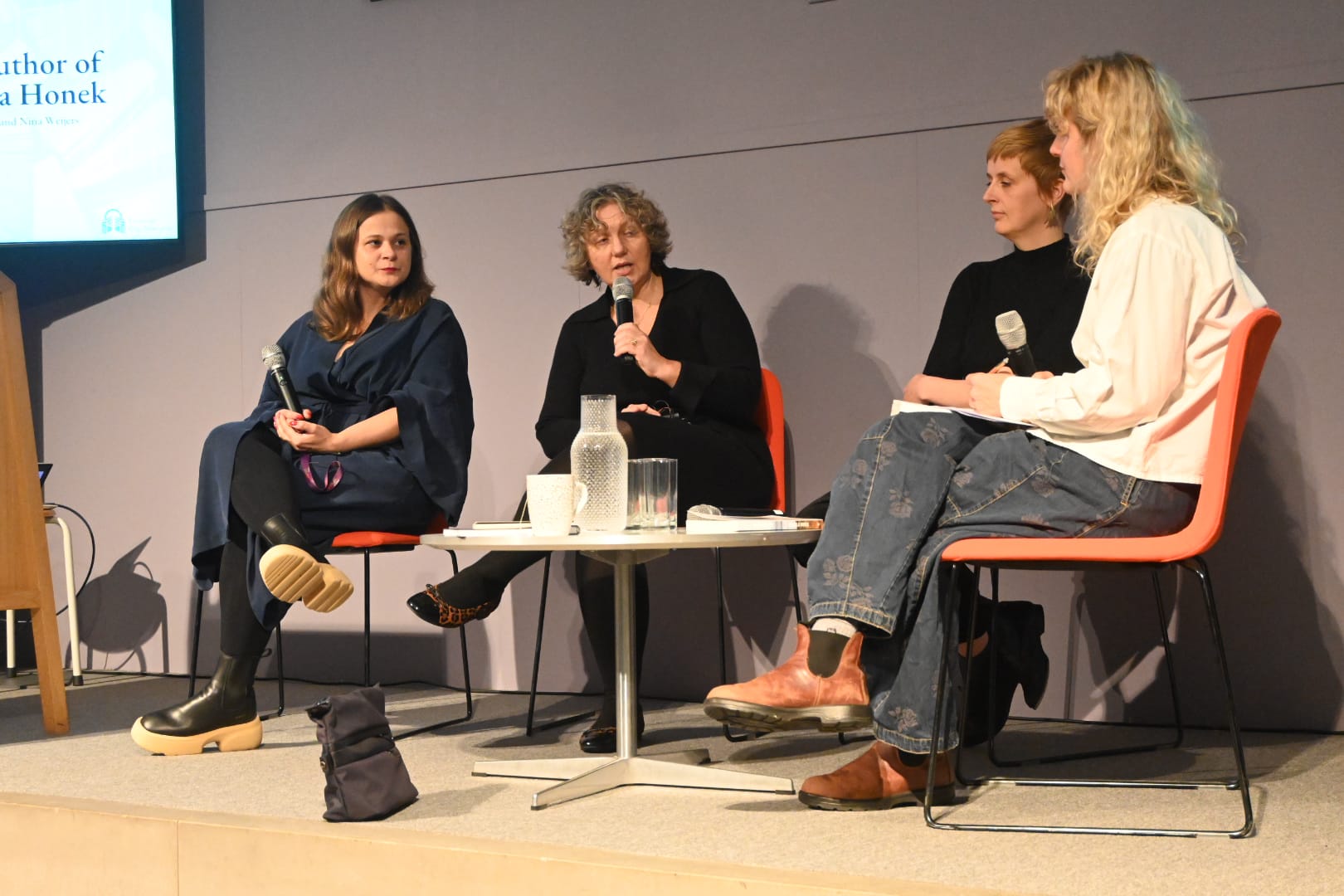 Niña Weijers moderowała rozmowę i pytała o polifonię, uniwersalność i ponadczasowość książki. Wspomniała o charakterystycznych polskich elementach, ale także o policjancie, który przykuł jej uwagę, a który — według Urszuli — mógł decydować o czyimś życiu i śmierci tylko dlatego, że posiadał telefon. Niña była również ciekawa roli kobiet oraz przestrzeni zajmowanej przez głosy męskie i kobiece. Charlotte interesowało z kolei to, jak postacie takie jak Piotrek potrafiły używać zarówno prostego, jak i poetyckiego języka.